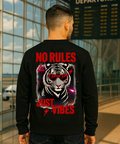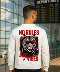 Lässig, nachhaltig und stylisch: Das No Rules Just Vibes Sweatshirt bringt Streetwear-Vibes in deinen Alltag. Mit dem kraftvollen Backprint und dem dezenten Tigerkopf-Frontprint wird es zum echten Statement-Piece – bequem, hochwertig und nachhaltig produziert.