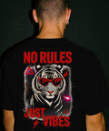 Der kraftvolle „No Rules Just Vibes“ Backprint mit coolem Tiger-Motiv und der dezente Tigerkopf-Frontprint machen dieses Shirt zu einem echten Streetwear-Bestseller. Perfekt für alle, die Freiheit, Selbstbewusstsein und Style leben.