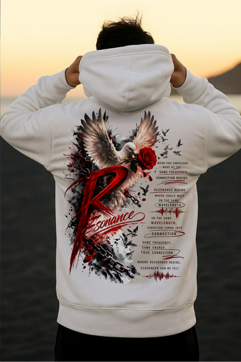 Resonance Heavy Cotton Oversized Hoodie ist ein hochwertiger Premium Hoodie im Oversized-Schnitt für alle, die modernen Streetwear Style mit auffälligem Backprint lieben. Das markante Design in Rot, Schwarz und Weiß macht diesen Oversized Hoodie zu einem echten Statement-Piece und verleiht deinem Look eine starke, urbane Ausstrahlung.